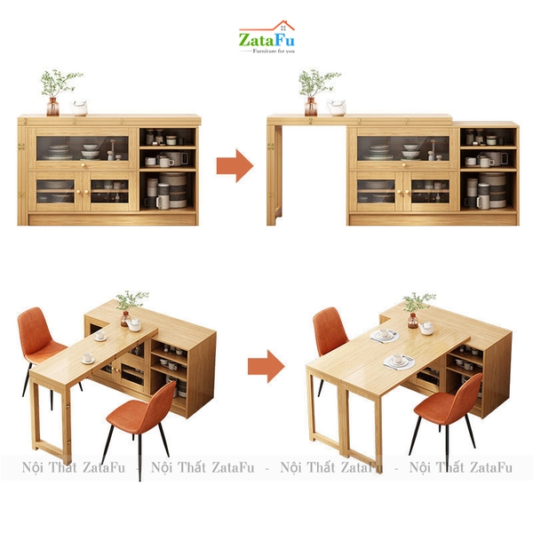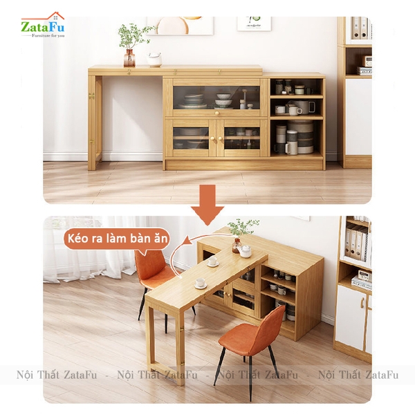 Bàn ăn gấp gọn kết hợp tủ chứa đồ mang lại sự tiện lợi