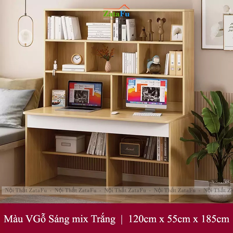 Bàn học bàn làm việc thiết kế đơn giản liền kệ. |