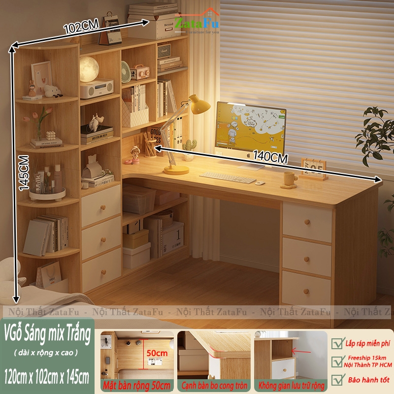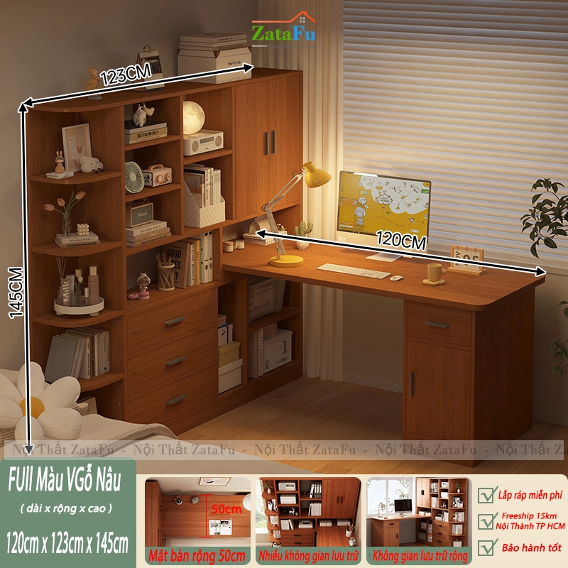 Bàn Làm Việc, Bàn Học Kết Hợp Kệ Sách Nhiều Tầng Thông Minh Gỗ MDF BLV-133 ZataFu