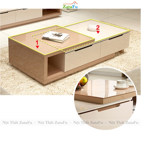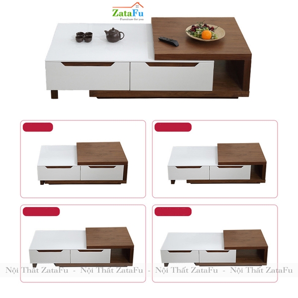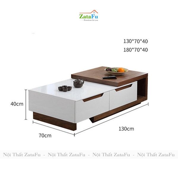 - Điểm đặc biệt của bàn mà ít sản phẩm bàn trà nào có đó là có thể kéo dài từ 130cm đến tối đa là 180cm, như vậy khách hàng có thể thoải mái đặt đồ mỗi khi nhà có khách hay những dịp đặc biệt.