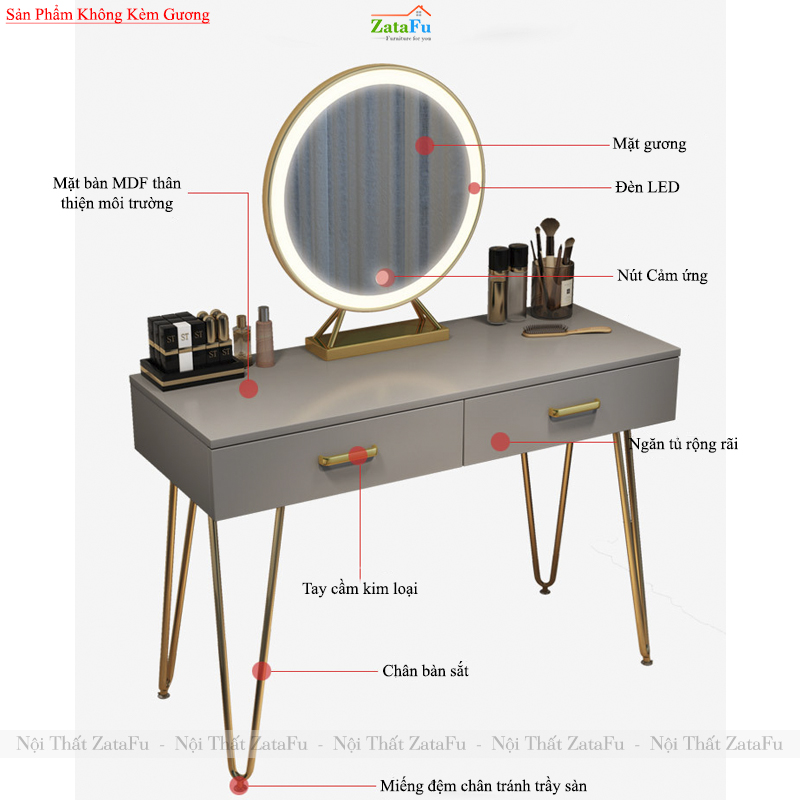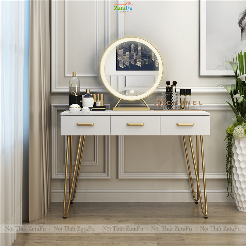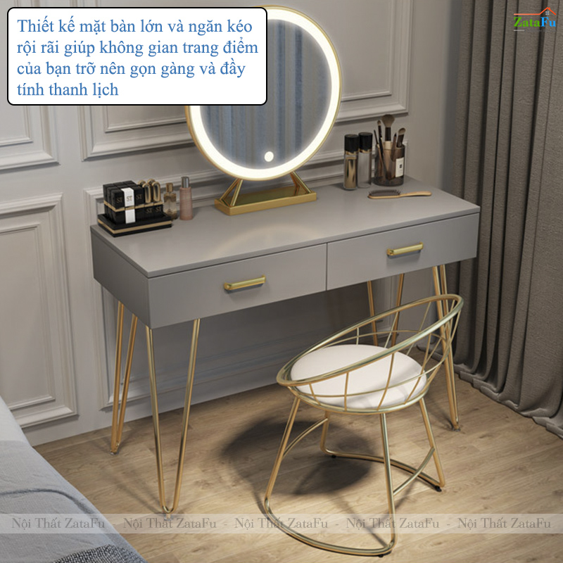 Cuối cùng, xu hướng tích hợp công nghệ vào nội thất cũng đang phát triển mạnh mẽ. Những sản phẩm bàn trang điểm có tích hợp đèn LED hay gương thông minh đang dần trở thành lựa chọn phổ biến. Tuy nhiên, Bàn Trang Điểm Chân Sắt Thiết Kế Đơn Giản Gỗ MDF Lõi Xanh Chống Ẩm BTD-27 ZataFu không có những tính năng này nhưng vẫn đảm bảo đáp ứng được nhu cầu sử dụng cơ bản của người tiêu dùng