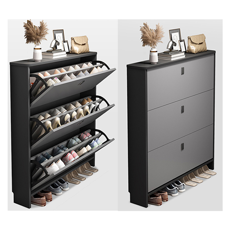 Thiết kế thông minh, không lộ đinh vít trên bề mặt, tăng tính thẩm mỹ và tinh tế hơn cho tủ giày. Đặc biệt nên chú ý tránh để vật quá nặng hoặc góc cạnh hay thả mạnh lên bề mặt tủ để không làm bề mặt trầy xước.