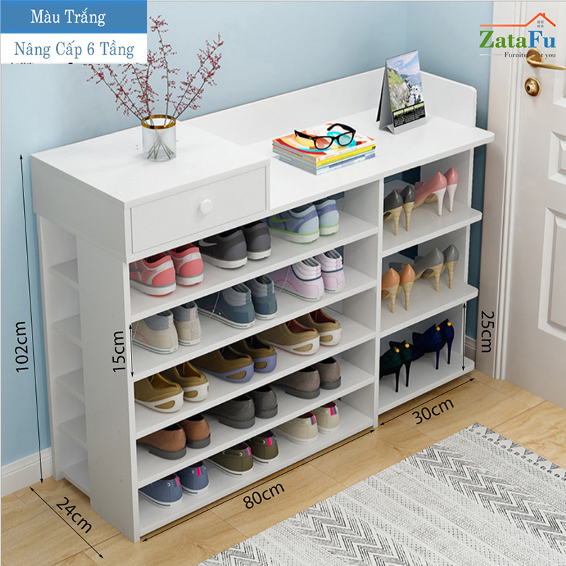 Kệ Giày Gỗ Trắng Mẫu Nâng Cấp KGIAY-02 ZAtaFu