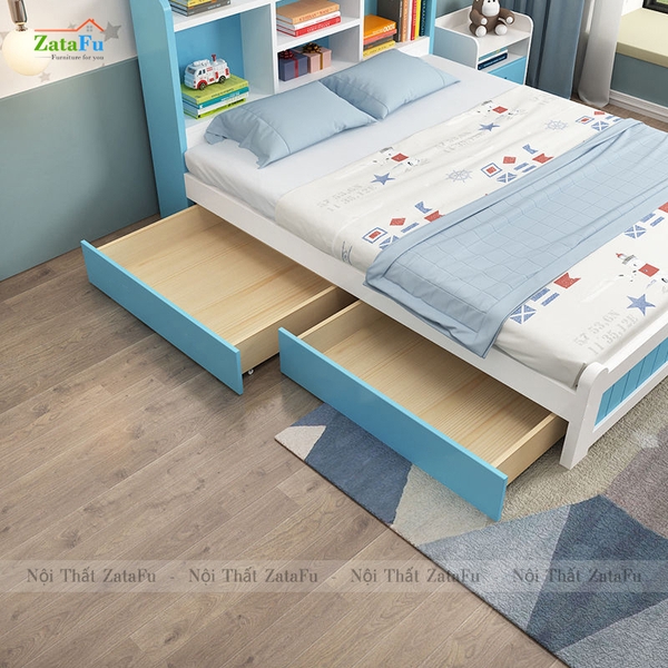 + Hộc đựng quần áo: Tích hợp vào thành hông giường ngủ, bên cạnh mục đích tiết kiệm diện tích phòng thì hộc cũng là nơi giúp con bảo quản áo quần sạch sẽ, phẳng phiu. Qua đó, con rèn được tính ngăn nắp, cẩn thận. tính tự lập và sạch sẽ.