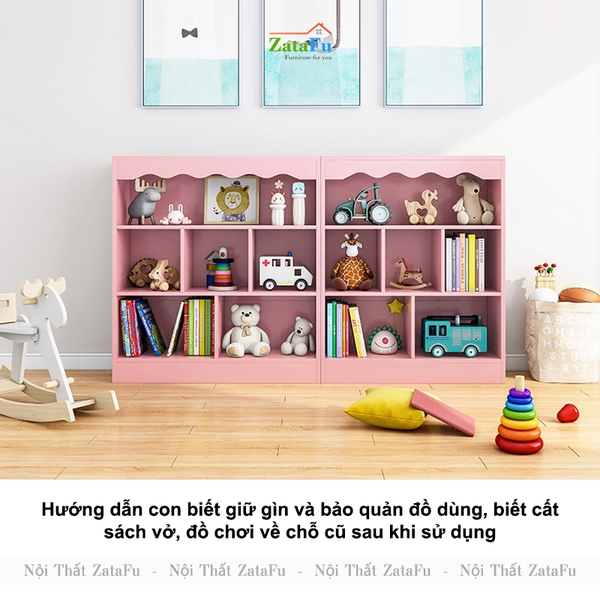- Trước hết với thiết kế 3 tầng cùng nhiều phân ô lưu trữ đa dạng kích thước, kệ sẽ mang lại cho con nhiều vị trí lưu trữ phù hợp với kích cỡ vật dụng, đồ chơi, giúp con tổ chức và sắp xếp đồ dùng cá nhân của riêng mình một cách đầy khoa học, ngăn nắp, hỗ trợ giữ gìn và đảm bảo cho chất lượng từng món đồ đặt bên trong.
