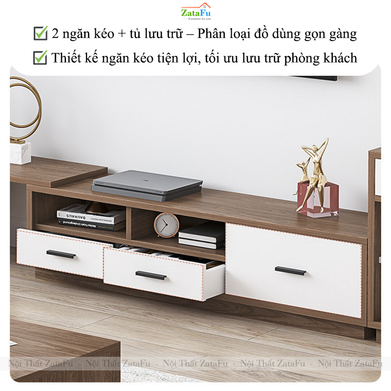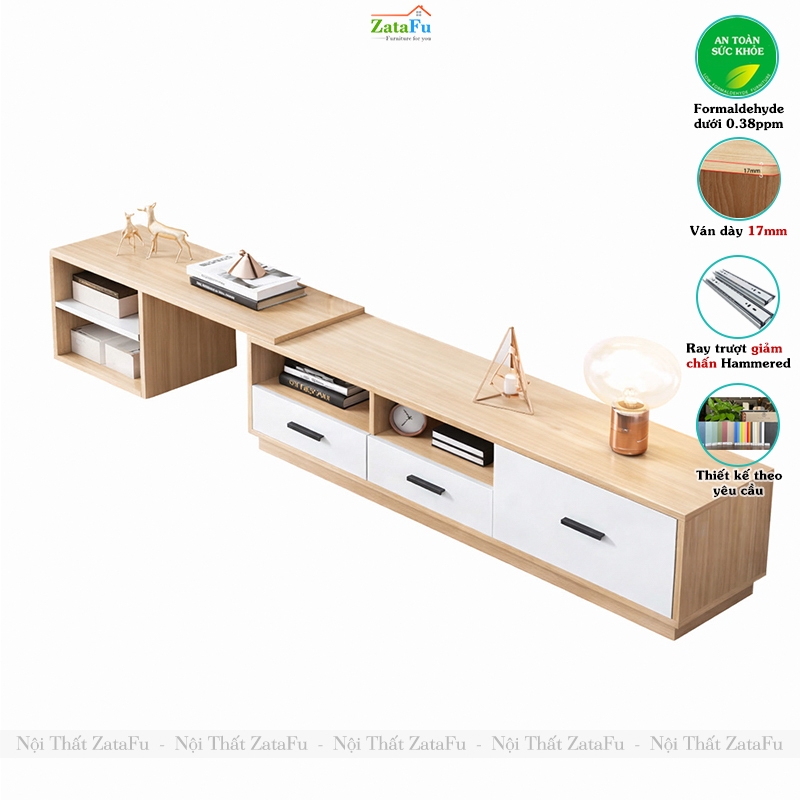 Trong không gian sống hiện đại, một chiếc kệ tivi không chỉ đơn thuần là nơi đặt tivi mà còn đóng vai trò quan trọng trong việc tối ưu diện tích – sắp xếp đồ đạc – tạo điểm nhấn thẩm mỹ cho phòng khách. KTV-50 ZataFu được thiết kế nhằm đáp ứng trọn vẹn những yêu cầu đó, với cấu trúc kéo giãn linh hoạt, cho phép tùy chỉnh kích thước theo từng không gian sử dụng.
