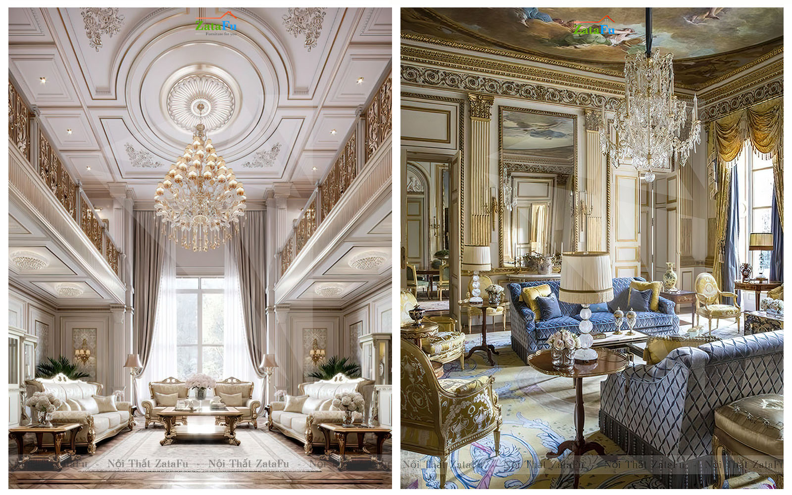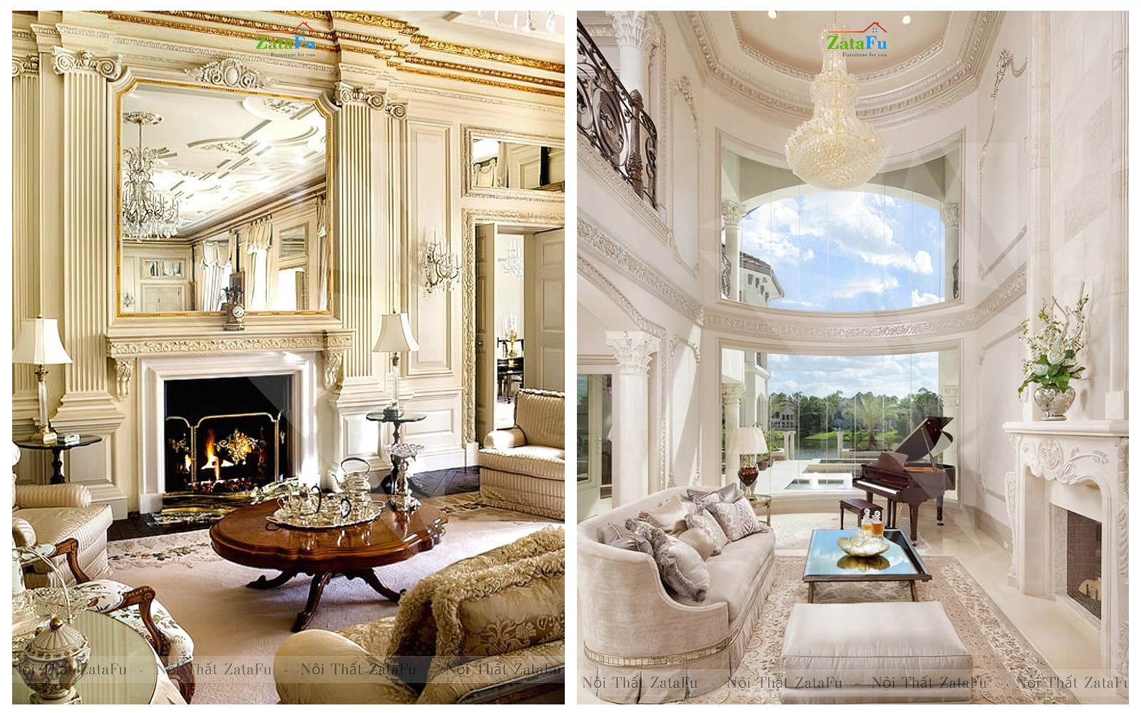 Thông thường với những ngôi nhà lựa chọn phong cách thiết kế sang trọng, không gian là điều được chủ nhà cũng như các kiến trúc sư chú trọng nhiều, vì vậy đa số họ thường xây dựng không gian mở, phòng khách có thể kết nối chung với phòng bếp và được ngăn cách với nhau bởi các vật dụng nội thất chứ không phải xây thành những căn phòng riêng biệt như một vài phong cách trang trí khác. Điều này cũng làm là một điểm đặc biệt của phong cách cũng như sẽ làm cho ngôi nhà trở nên rộng rãi, thoáng mát hơn. Với sự kết hợp hài hòa của các món nội thất sử dụng để bài trí cho phong cách này, phòng khách và cả ngôi nahf sẽ mang hơi thở sang trọng, đẳng cấp, thể hiện sự hào sảng, giàu có và khả năng biết thưởng thức nghệ thuật cái đẹp của gia chủ.