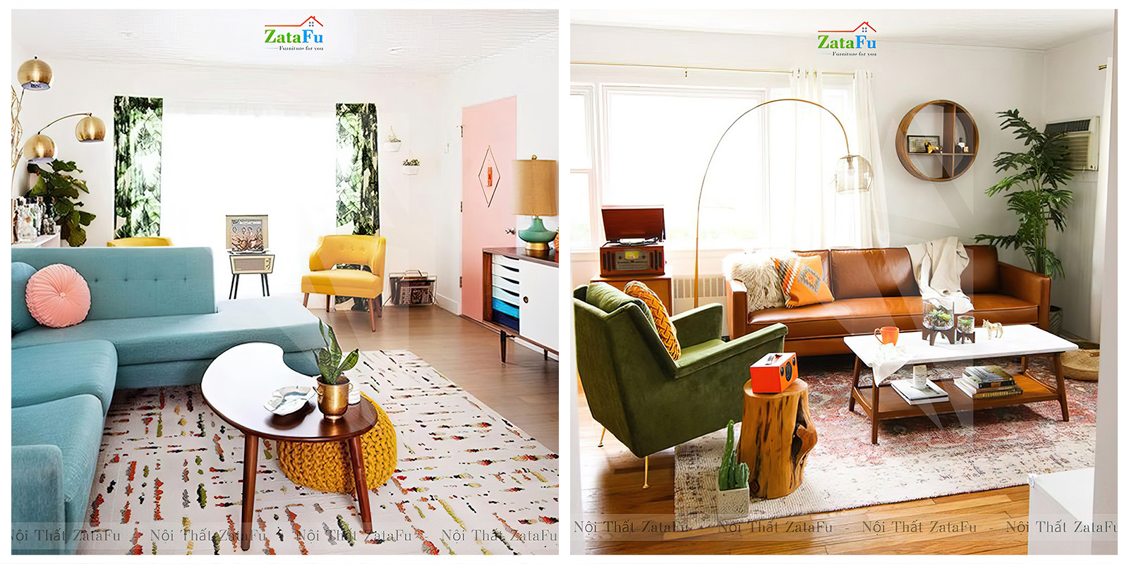 Hoài niệm những cái gì thuộc về xưa cũ nhưng vẫn phản phất hương vị hiện đại chính là những từ ngữ dành cho phong cách Retro. Các món nội thất sẽ được thiết kế giống như thiết kế hình thù các món nội thất của thời trước kia, lồng ghép cùng những gam màu nóng nổi bật như đỏ, vàng, cam,.. xen kẽ cùng các gam màu lạnh để tạo lên sự nổi bật cho không gian. Phong cách này vài năm trở lên đây được giới trẻ hưởng ứng và lựa chọn sử dụng rất nhiều trong cuộc sống, từ phong cách ăn mặc đến cả trang trí cho phong cách ngôi nhà. Việc giới trẻ ưu chuộng Retro cũng như một sự gợi nhớ thế hệ sau luôn nhớ về những điều tuyệt vời đã tạo nên văn hóa, phong cách ở những thế kỉ trước, bên cạnh đó vẫn có sự hiện đại trong lối sống du nhập thời nay, như một sự giao thoa thời đại trọn vẹn, tinh tế. Một chút mộc mạc, giản dị, thổi thêm làn gió cổ điển, pha thêm chút mới mẻ là ta đã sở hữu một căn phòng ngập tràn phong cách Retro. Các món đồ nội thất sử dụng được thiết kế rất đơn giản,kích thước cũng nhỏ nhắn vì thế nó khá phù hợp với tất cả các không gian nhà, ngay cả những căn phòng trọ diện tích nhỏ vẫn có thể lựa chọn phong cách bài trí này.