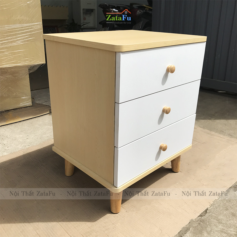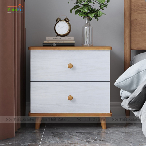 Điểm nổi bật của chiếc tủ đầu giường này không chỉ nằm ở thiết kế, kiểu dáng, công dụng mà nó còn được đánh mạnh vào phần màu sắc sản phẩm. Với cách phối vân gỗ sáng với vân gỗ trắng - màu chưa được sản xuất ở bất kì sản phẩm nào của ZataFu thì nó như đánh mạnh vào thị giác khách hàng bởi sự phối màu đẹp mắt, đồng thời cũng đánh dấu cho diện mạo mới trong khâu thiết kế và sản xuất sản phẩm. Ngoài ra, một đặc quyền nữa dành tặng cho khách hàng khi mua nội thất của ZataFu đó là bạn có thể yêu cầu thay đổi màu sắc, kích thước món đồ để phù hợp hơn với sở thích và nhu cầu sử dụng của bản thân.