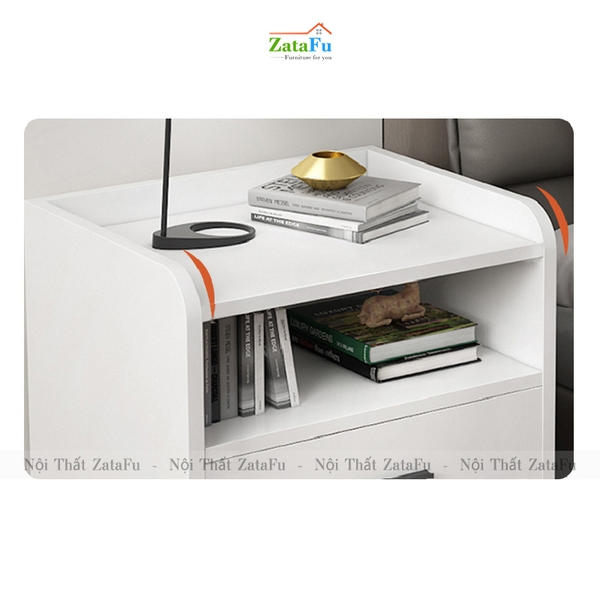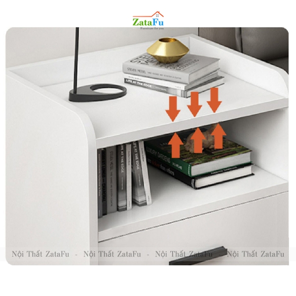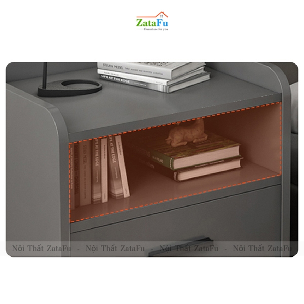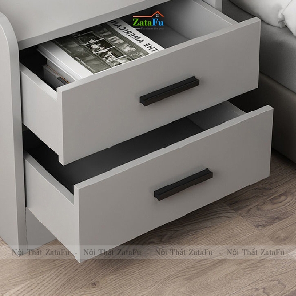 Nếu chỉ sở hữu mỗi vị trí đặt đồ là mặt tủ như thế thì rất tủ rất ít công dụng và khả năng hỗ trợ gia chủ trong cuộc sống cũng không được nhiều. Vì vậy bên dưới mặt tủ được phần chia thành 2 tầng nhỏ nữa và tích hợp hộc kéo vào bên trong, mang lại cho chúng ta thêm vị trí để bảo quản đồ dùng. Các món đồ được bảo quản trong ngăn tủ sẽ được đa dạng hơn với mọi kích thước và kiểu dáng phù hợp, đặc biệt các cị em phụ nữ thường tận dụng để cất những món đồ có giá trị hay những lọ mĩ phẩm đắt tiền thường sử dụng mỗi đêm. Song bên cạnh đó, cất vài cuốn sách vào ngăn hộc tủ, trước khi đi ngủ lấy ra đọc vài trang sẽ giúp cho giấc ngủ của chúng ta dễ dàng và bình yên hơn.