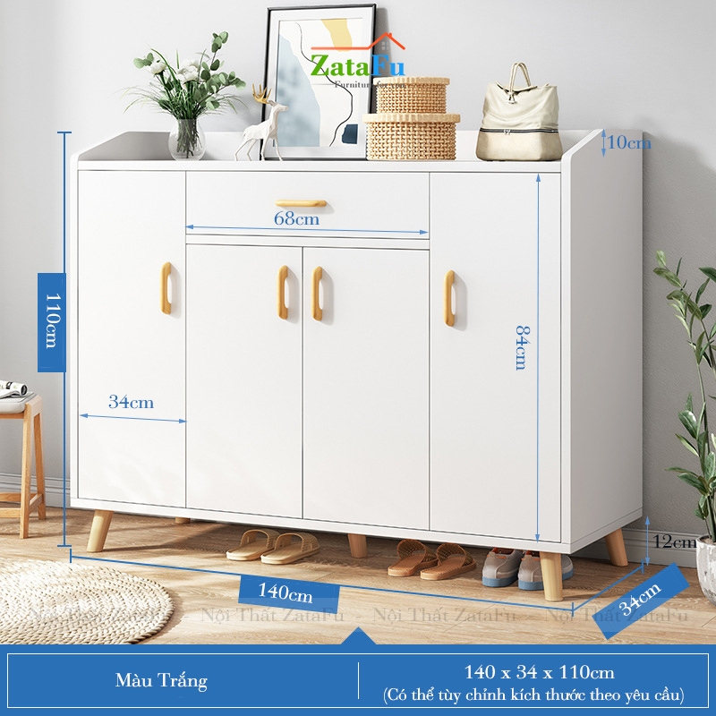 Những chiếc tủ đựng giày đóng vai trò quan trọng trong gia đình, là người bạn đồng hành giúp không gian nhà - đặc biệt là phòng khách luôn sạch sẽ, ngăn nắp. Thấu hiểu nhu cầu của người sử dụng, Nội thất ZataFu đã thiết kế ra tủ giày 4 cánh chân gỗ TGIAY-07 có kích thước lớn, sẽ là đáp án giải quyết bài toán cho gia đình nhiều giày dép/đông thành viên,..
