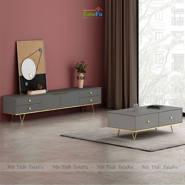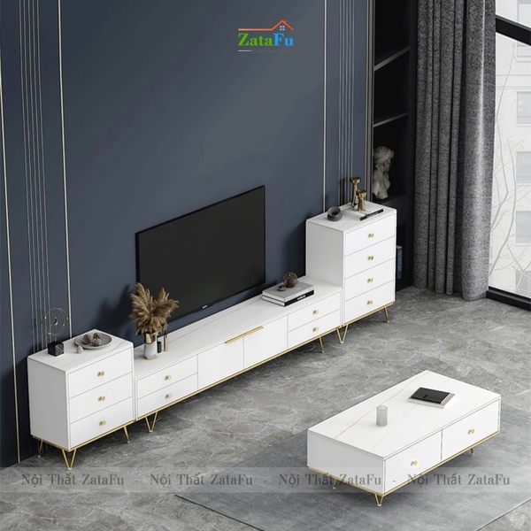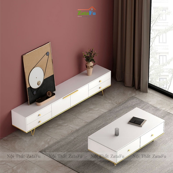Muốn tận dụng hết giá trị tiện ích của kệ tivi thì khách hàng có thể thoải mái bố trí nó với đồ đạc trong phòng, sắp xếp, kết hợp để có thể tạo nên một phông nền hài hòa và đẹp mắt. Đồng thời đi kèm với KTV-19 còn có bàn trà bàn sofa chân crom mạ vàng crom cùng màu sắc, kiểu dáng và chất liệu chế tạo. Bạn có thể lựa chọn tô điểm cho không gian mình bằng chiếc kệ tivi, bằng chiếc bàn trà này, hoặc nếu bạn muốn thêm một sự sang trọng thống nhất cho ngôi nhà của bạn thì có thể trưng bày bằng cả combo. Nội thất ZataFu luôn sẵn sàng hỗ trợ tư vấn và giúp bạn có những lựa chọn tốt nhất cho mình.
