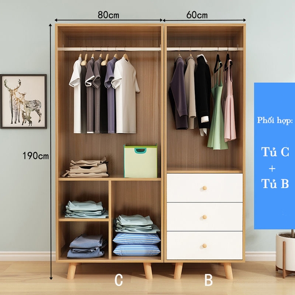- Ngoài làm tủ chưa quần áo, nó còn đóng vai trò như một chiếc tủ trang trí, cho không gian thêm phần sinh động, hiện đại.