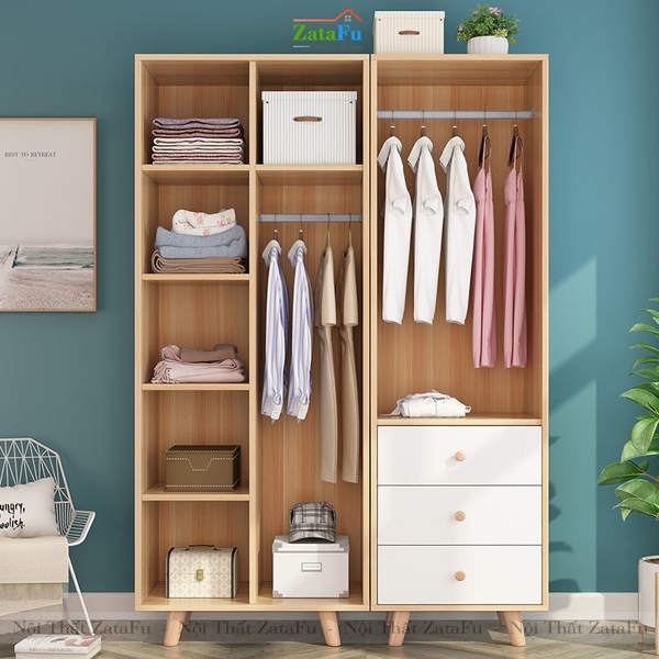 - Các ngăn tủ được sắp xếp hợp lí cho khách hàng dễ dàng phân chia các loại quần áo và thoải mái treo những bộ váy dài mà không sợ bị nhăn vải hay có nếp gấp.